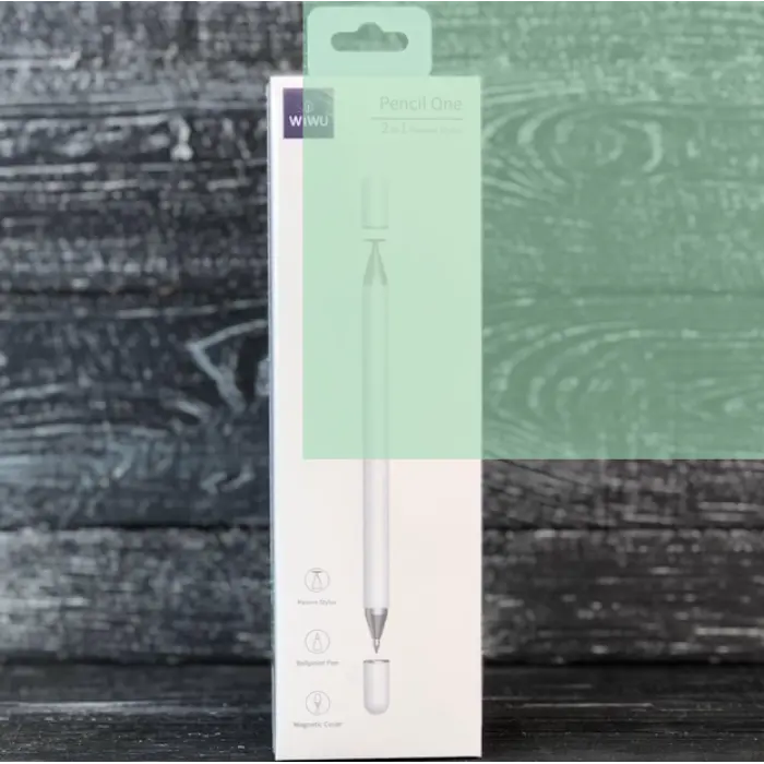 Стилус WIWU Pencil One 2 in 1 Passive Stylus — это действительно необычный аксессуар, который является 2-в-1 решением, представляющим собой одновременно и стилус, и обычную шариковую ручку. Съёмный наконечник стилуса выполнен из высококачественного силикона, благодаря чему аксессуар является полностью безвредным для сенсорных экранов. Устройство выполнено в удобном форм-факторе, привычном каждому, поэтому во время эксплуатации будет комфортно ощущаться в руке.