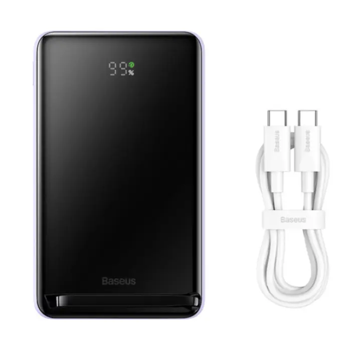 Портативна батарея Baseus Magnetic Bracket 3in1 10000mAh 20W 3A з бездротовою зарядкою Qi 15W - це унікальна батарея для бездротової зарядки вашого смартфона з ємністю 10000 мАг, стильним зовнішнім виглядом і портом USB Type-C, який дозволяє відновити. Компактний, елегантний, інноваційний та багатофункціональний повербанк Baseus виготовлений із високоякісних матеріалів.