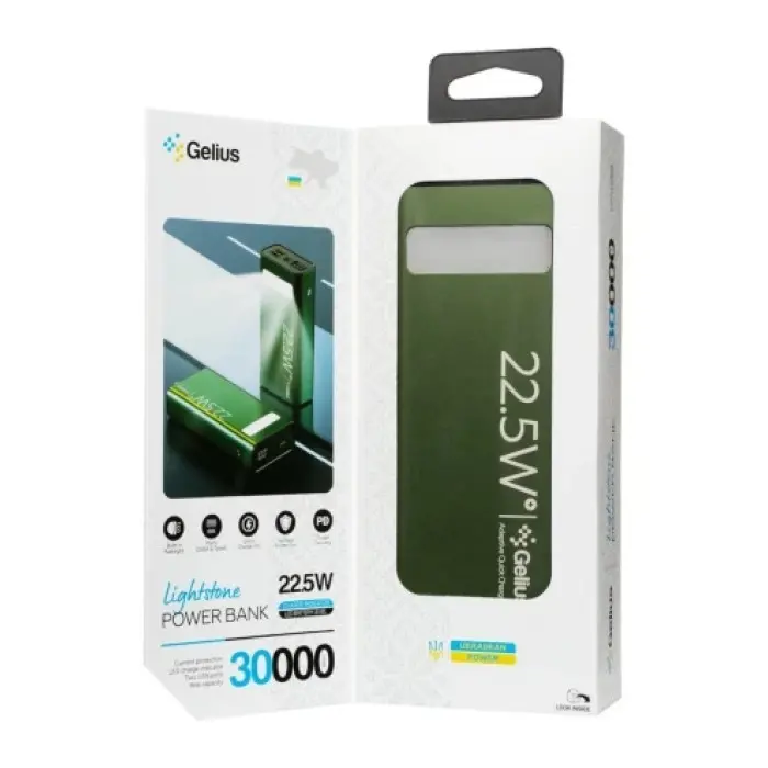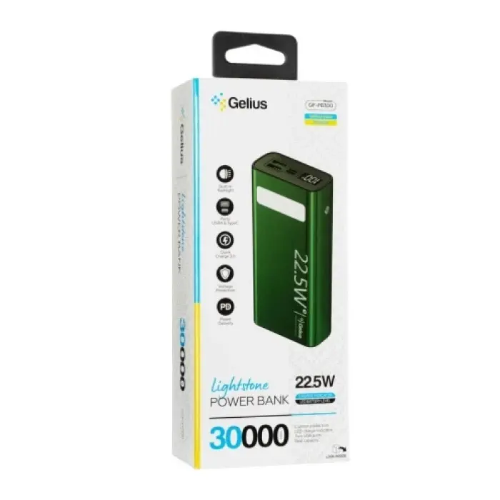 Универсальная мобильная батарея Повербанк Gelius Lightstone 22.5w GP-PB300 30000mAh Зеленый