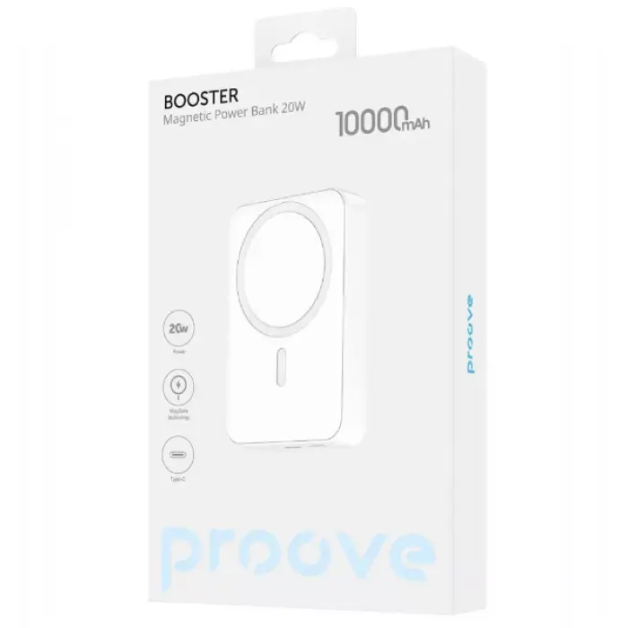 Универсальная мобильная батарея Повербанк Proove Booster MagSafe 10000 mAh 20W Белый