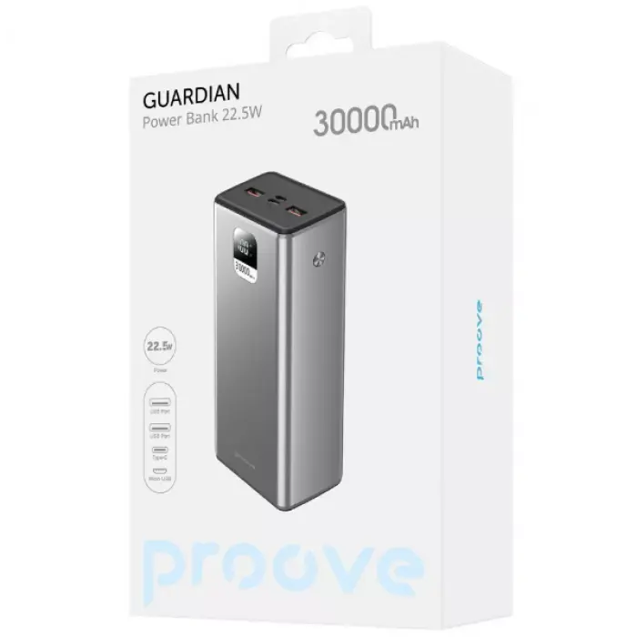 Мощный и надежный повербанк Proove Guardian с емкостью 30000 мА·ч станет идеальным решением для тех, кто ценит автономность и удобство в любых условиях. Он оснащен несколькими зарядными портами, поддерживает быструю зарядку и имеет стильный металлический корпус, обеспечивающий долговечность и привлекательный внешний вид.