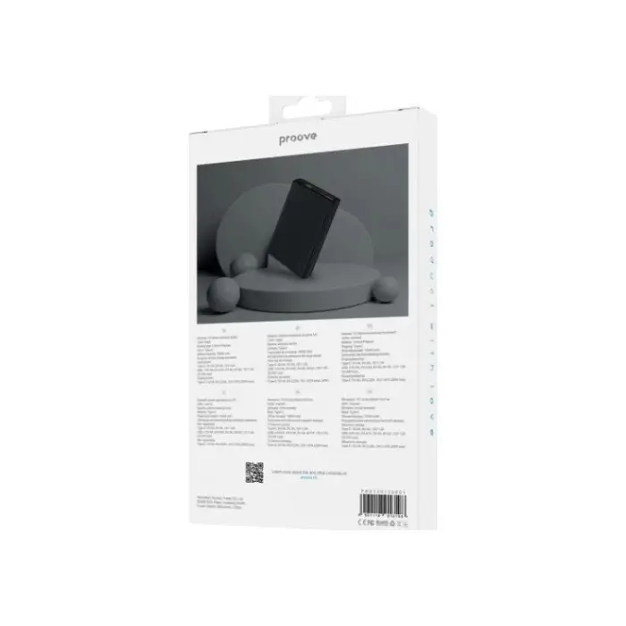 Бренд устройства- Proove Ёмкость АКБ 10000mah Тип батареи Литий-полимерные (Li-pol) Входные интерфейсы 1*USB, Type-C Индикация С дисплеем Беспроводная зарядка Нет Цвет Чёрный Материал корпуса огнестойкий VO пластик Все характеристики