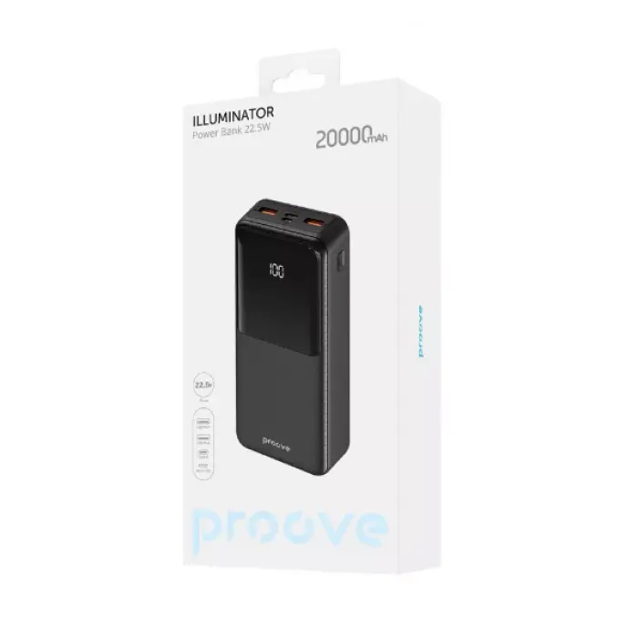 Универсальная мобильная батарея Повербанк Proove Illuminator 20000mAh 22.5W Черный