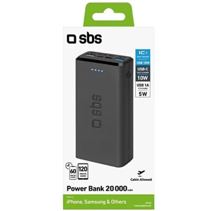 В комплект SBS 20000 MAH входит повербанк и кабель Micro USB для зарядки.