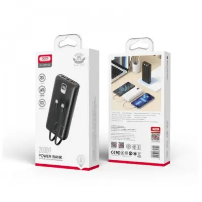 Power Bank XO PR185 - это практичное, высокотехнологичное устройство, которое значительно упростит зарядку современных портативных гаджетов. Аксессуар реализован в стильном, эргономичном дизайне, имеет достаточно компактные размеры и небольшую толщину. Его надежно собранный корпус выполнен со скругленными гранями и приятной на ощупь поверхностью, которая предотвращает случайное выскальзывание из рук, изготовлен из прочного, стойкого к ударам и царапинам пластика. Повербанк оснащен двумя USB портами, разъемами Micro-USB и Type-C, двумя плоскими кабелями, которые фиксируются в слотах на его задней панели, один из которых имеет интерфейс Lightning, а второй - Type-C. Определить уровень заряда встроенной батареи емкостью 20000mAh помогут LED дисплей и кнопка, а зарядить ее - кабели и разъем Micro-USB. Кабель с интерфейсом Type-C поддерживает быструю двухстороннюю зарядку, зарядку по протоколу PD с максимальной мощностью на выходе 20Вт, а один из USB портов - протокол QC с максимальной исходящей мощностью 22.5Вт.