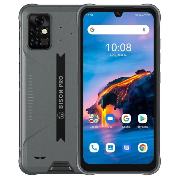 UMIDIGI Bison Pro – защищенный смартфон, изготовленный в корпусе из прочного пластика и металла. Он способен выдерживать внешнее воздействие по стандартам IP69K, IP68 и MIL-STD-810. Практически всю лицевую поверхность UMIDIGI Bison Pro занимает 6,3-дюймовый дисплей IPS с разрешением 2340х1080 точек. Высокую скорость работы в повседневных задачах обеспечивает 8-ядерный процессор MediaTek Helio G80, дополненный графическим ускорителем Mali-G52. Основная камера смартфона получила три модуля на 48, 16 и 5 МП. Фронтальная 24 расположена в небольшом каплеобразном вырезе дисплея. Дополнительно UMIDIGI Bison Pro имеет встроенный NFC и функцию быстрой зарядки.