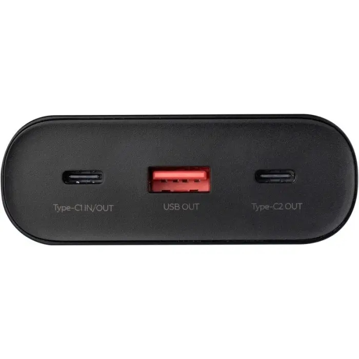 Модель обладнана трьома вихідними портами — двома Type-C та одним USB-A, що дозволяє одночасно заряджати до трьох пристроїв. Вхідний порт Type-C забезпечує швидке заряджання самого повербанка, що економить ваш час.