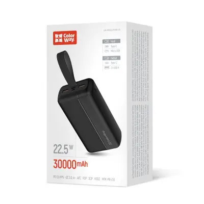Универсальная мобильная батарея Повербанк ColorWay 22,5W 30000mAh EnergyPlus Чёрный