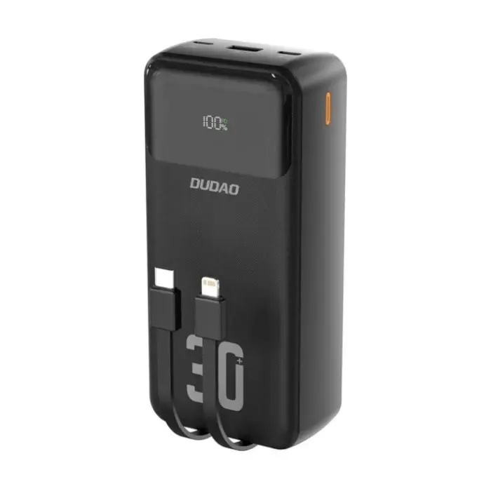 Универсальная мобильная батарея Повербанк Dudao K15Max Built-in Cables 22.5W 30000mAh Чёрный