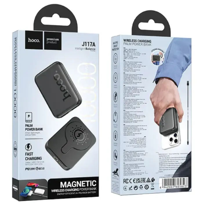 Hoco J117A Esteem – это компактный, стильный и многофункциональный повербанк, поддерживающий как проводную, так и беспроводную зарядку. Благодаря поддержке технологий быстрой зарядки PD и беспроводной зарядки мощностью до 15 Вт, это устройство станет незаменимым помощником в повседневном использовании.