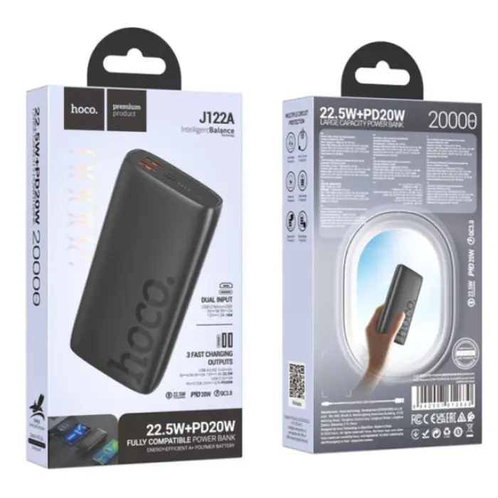 Повербанк Hoco J122A — надежный внешний аккумулятор с поддержкой быстрой зарядки PD (Power Delivery) и QC 3.0 (Quick Charge), который обеспечивает эффективную зарядку ваших устройств в любых условиях.