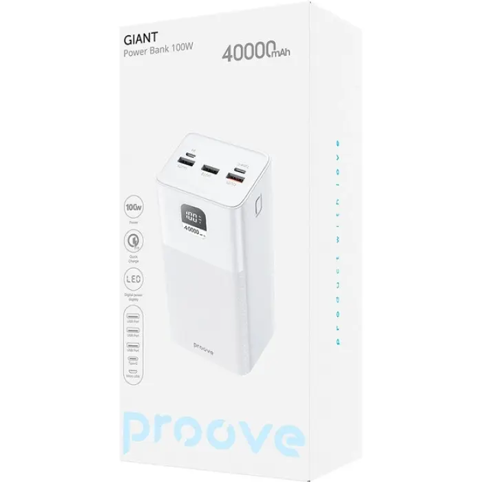 Proove Giant – это мощный универсальный повербанк с поразительной емкостью 40000 мА·ч, который спосо..