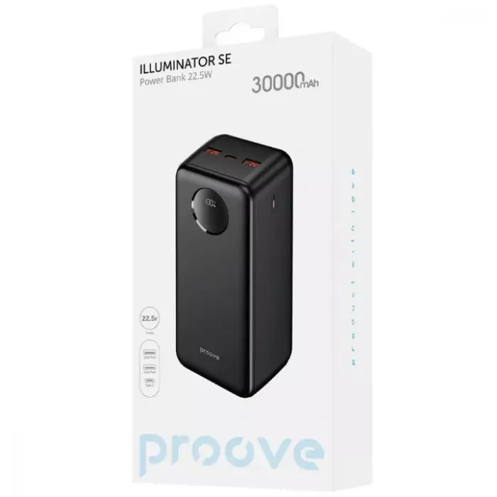 Универсальная мобильная батарея Повербанк Proove Illuminator SE 30000mAh 22.5W Черный