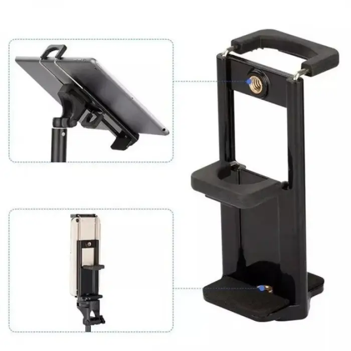 Универсальный крепление Tablet Clamp для двух устройств, мобильного телефона и планшета на штатив Черный