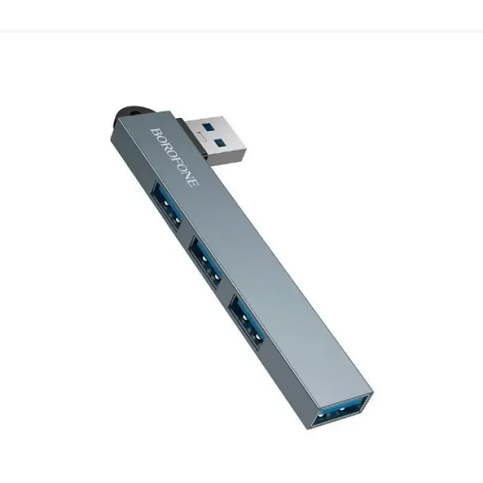 USB хаб Borofone FH1 4-in-1, Сірий — компактний і зручний адаптер для розширення кількості USB-портів на ноутбуці або ПК. Дозволяє одночасно підключати кілька периферійних пристроїв, забезпечуючи стабільну та швидку передачу даних.
