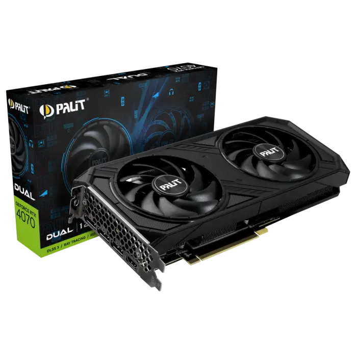 GeForce RTX 4070 серии Dual имеет гладкое черное покрытие. Благодаря двум большим 95-мм вентиляторам и отверстиям повышенной площади на задней панели видеокарты, видеокарта обеспечивает конкурентоспособную эффективность охлаждения и акустические характеристики. Тонкая RGB-подсветка на задней панели также добавляет компьютеру визуальный стиль, не отвлекая при этом слишком много внимания.