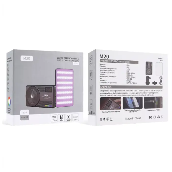 LED RGB M20 — це універсальне рішення для фото- та відеозйомки, яке поміститься навіть у кишеню. Ідеально підходить для блогерів, відеографів, фотографів та всіх, хто хоче створювати якісний контент із професійним освітленням у будь-якому місці.
