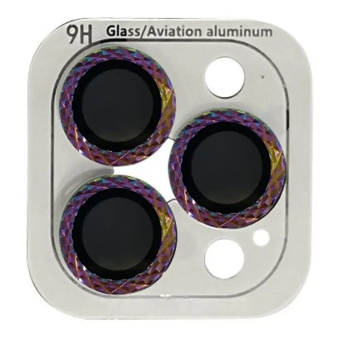Захисне скло на камеру Metal Shine iPhone 15 Pro/15 Pro Max Бузкове (Rainbow)